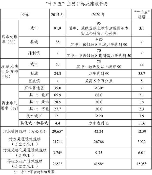 “十三五”全國城鎮污水處理及再生利用設施建設規劃
