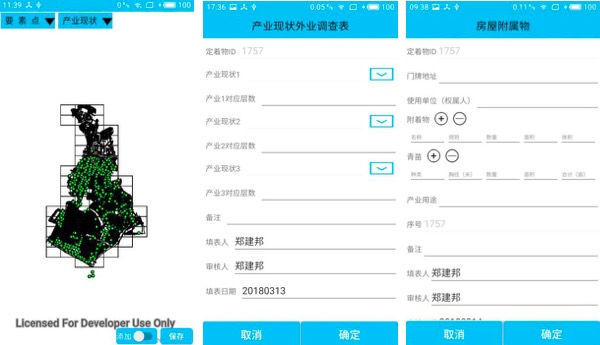 三舊改造數(shù)據(jù)調查APP(簡稱三舊調查)是廣州元測信息科技有限公司為了提高“三舊”改造的項目調查工作效率,實現(xiàn)內外業(yè)一體化數(shù)據(jù)采集模式而開發(fā)一套移動數(shù)據(jù)采集軟件。主要功能有新建工程(回退、設置調查人、修改工程名稱、添加參與人),打開工程(選擇圖層、選擇工作類型、添加要素、信息錄入、畫草圖),設施點(點狀態(tài)、刪除要素、拍照、圖片識別、查看圖片、上傳圖片),數(shù)據(jù)查詢,刪除工程,用戶管理(登錄、注冊、退出)等。