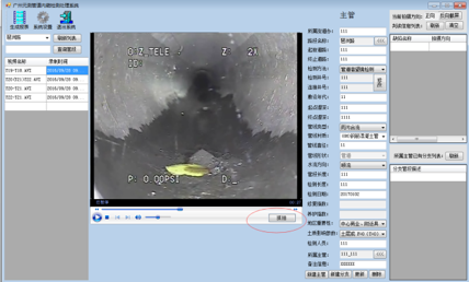 管道內(nèi)窺檢測處理系統(tǒng)主要功能包括管道檢測視頻讀取,視頻播放,缺陷圖像截取,主管信息錄入,管段信息錄入,管道檢測數(shù)據(jù)統(tǒng)計(管道檢測概況、管道檢測工作量、檢測結(jié)論、管段狀況評估表、管道缺陷統(tǒng)計表、管道檢測成果表、管道缺陷類型和等級統(tǒng)計表、不同等級缺陷數(shù)量表,缺陷長度比例及密度統(tǒng)計表),管道檢測報告編寫等功能模塊。